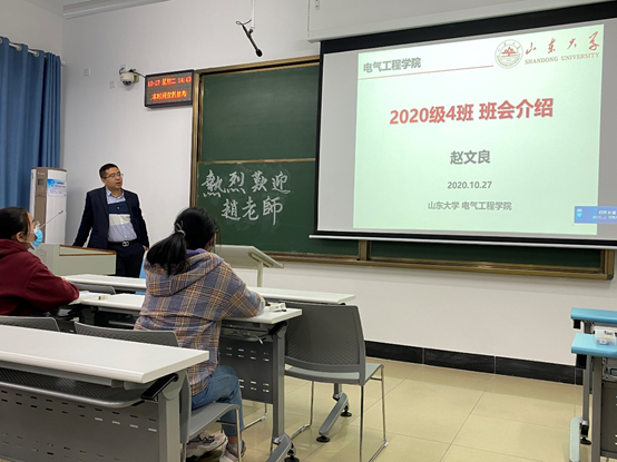 随后,赵文良从个人教育工作经历、学术贡献和创新成果及意义、团队和平台建设、工作思路几个方面为同学们展开介绍。在会议中,赵文良建议同学们应当对未来考研以及出国留学做出提前准备。另外,赵文良还以自己研究的高品质电机系统为例,指出国家目前高端电机技术受制于人的现状,鼓励同学们积极在大学期间进行科技创新。最后,赵文良表示,作为班主任,希望能成为同学们思想上的引领者,学术上的引路者,生活上的依靠者,真正给同学们带来帮助。