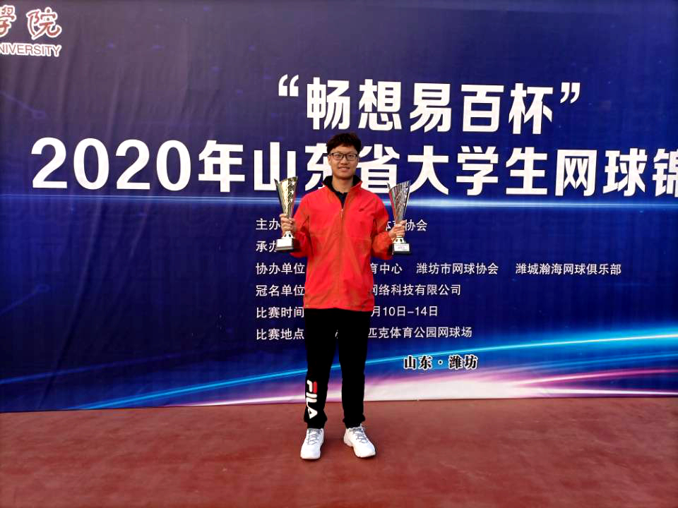 关于文体活动:因为我从小就接受了较为系统的网球训练并一直坚持着,因此拿过很多的奖也有过走职业运动员道路的机会,但最终我只将其作为兴趣爱好来培养。初入山大发现网球氛围并不浓郁,学校也没有正式的网球队,我便下定决心创立山大的第一支正式的校网球队,这个愿望终于在2019年得以实现。队伍成立初期,带领队员训练、备战第一次省赛的压力促使我从较为紧张的课程安排中尽量挤出时间,这就使我不得不提高学习科创的效率来尽量弥补。庆幸的是,我顶住了压力并获得了较为不错的成绩,这支新成立的队伍也得到了学校的认可。所以,当某一部分不得不占据较多的时间时,我们要做的就是排解好压力、调整好心态,尽可能地去提高其他部分的效率,坚持住,最后的结果往往不会让你失望的。