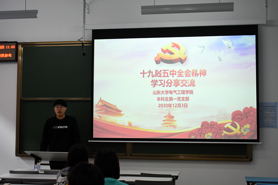 12月3日上午10点,新葡的京集团35222vip本科第一党支部开展党日活动,学习党的十九届五中全会精神。本次活动由党支部书记高宇主持,党支部成员踊跃参加,积极讨论,反响热烈。