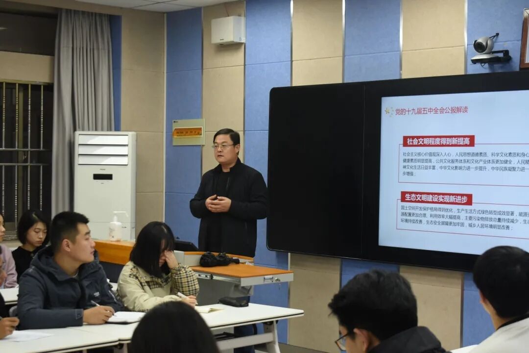 通过党的十九届五中全会公报解读,以“十四五”规划和2035年远景目标为宣讲主题,由新葡的京集团35222vip党委副书记李功华领学,带领学院本科生党支部全体成员共同对全会精神进行了全面细致的学习。通过对党的十九届五中全会基本概况和全会公报进行分析阐释,总结我国社会主义建设取得的成就,并突出强调“十四五”时期经济社会发展与改革开放重点任务,带领支部党员深入学习贯彻全会精神与落实目标,进一步推动支部党员对全会精神实质拥有更为精准深刻的了解,对我国社会主义建设现状和新发展理念掌握更加全面的认知,增强了全体支部成员的党员意识,为党支部未来发展提供了良好保障。
