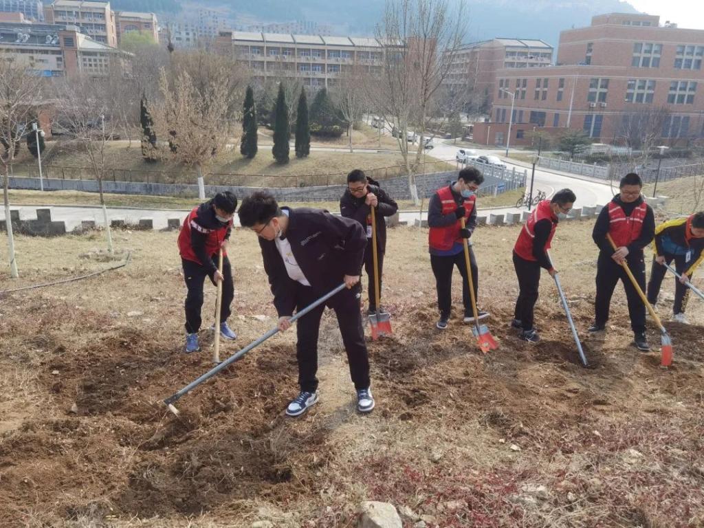 活动前期,学院青志协志愿者前往兴隆山试验田,挥锹铲土,翻地挖坑,并精心策划后续活动流程,为种植做好充分准备。
