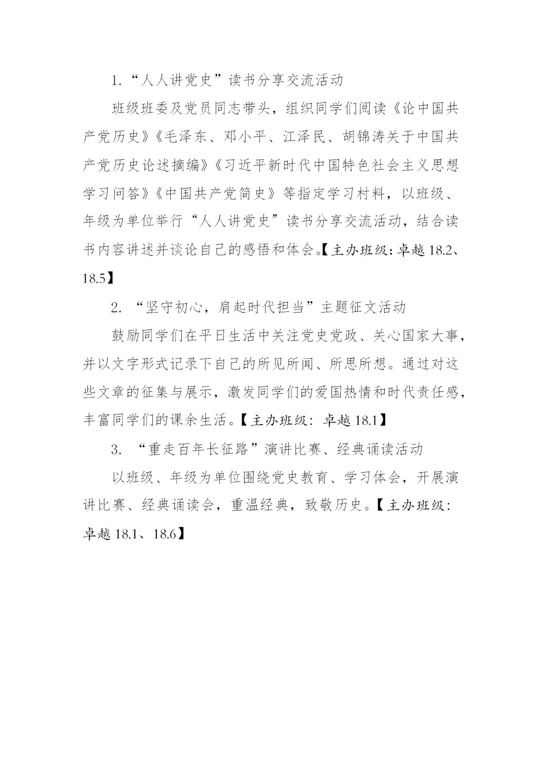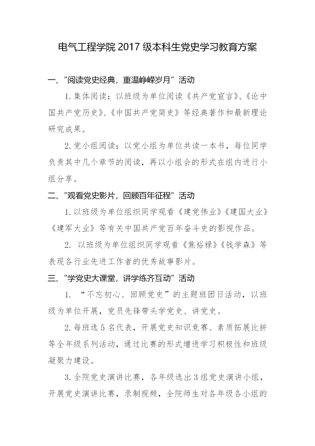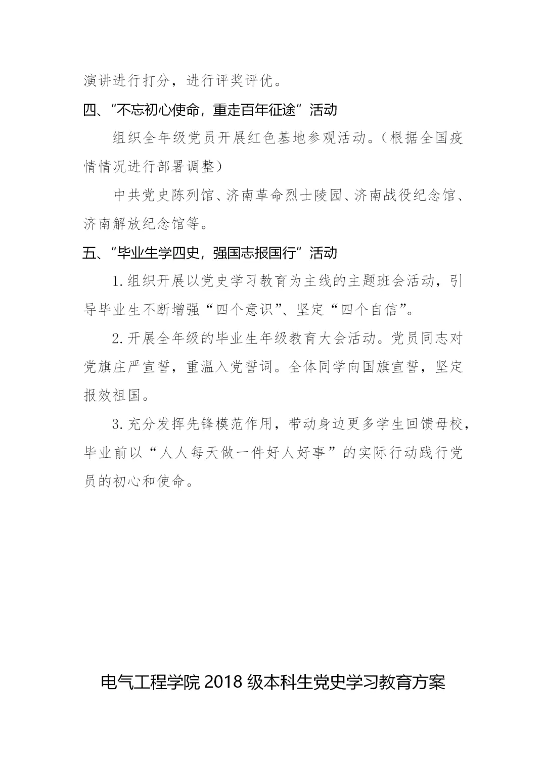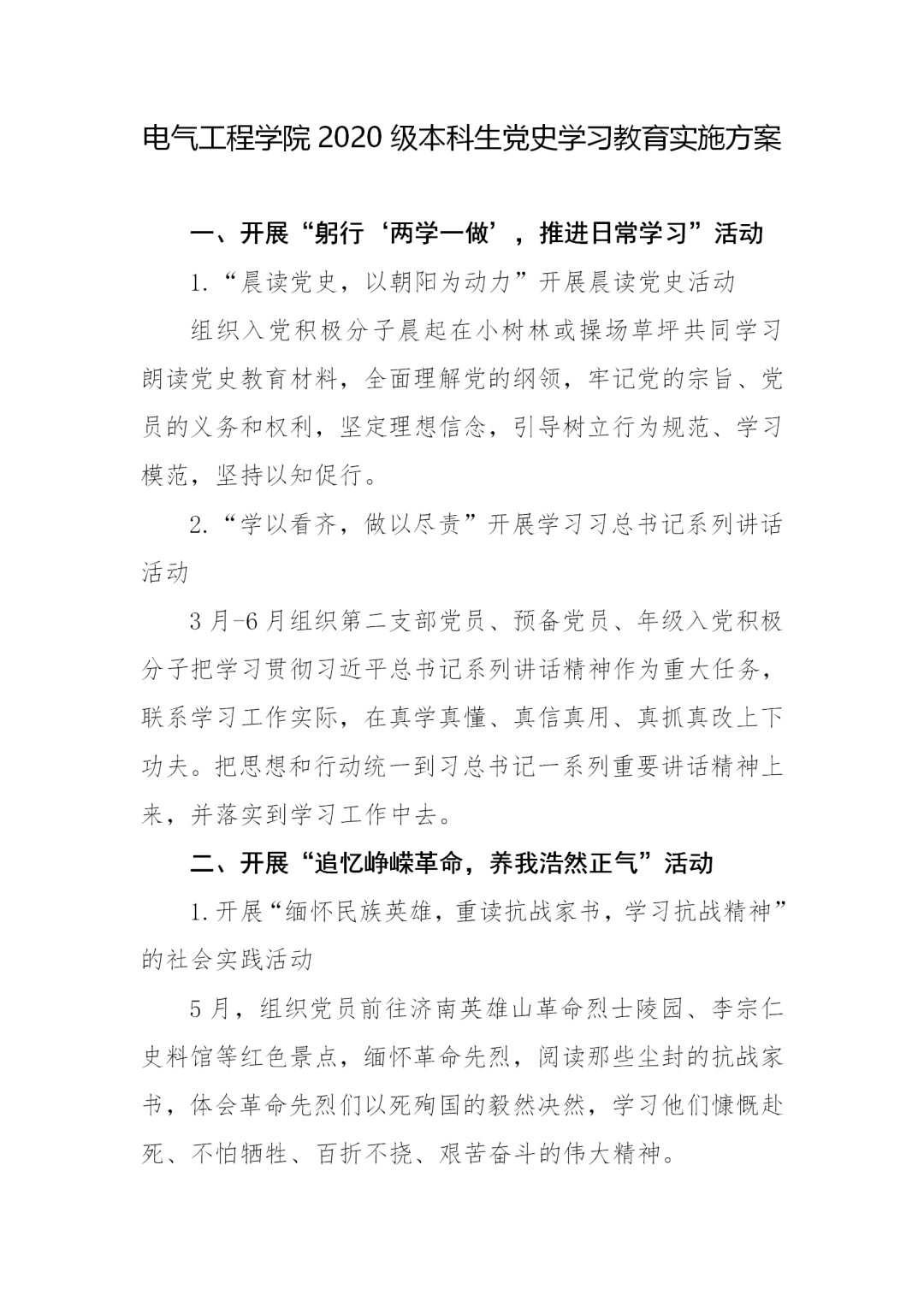 3月14日,学校发布《“重走百年‘长征路’”学生党史学习教育方案》,科学指导学生开展党史学习教育。《方案》采取学校整体方案引导、学院形式创新的模式,结合大学生学习生活特点,融贯学、赛、讲等,线上线下有机结合,从十一个方面对学生党史学习教育进行科学系统的指导。用好“学习强国”“灯塔—党建在线”等网络平台优质党史教育资源,以党史学习教育为主线深入开展“四史”教育,充分利用好百廿山大校史资源,探索科学学习党史的方法路径,创新发展切实有效的学习教育形式,调动学生主动参与和自主学习的积极性。