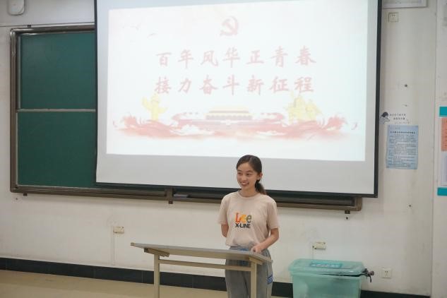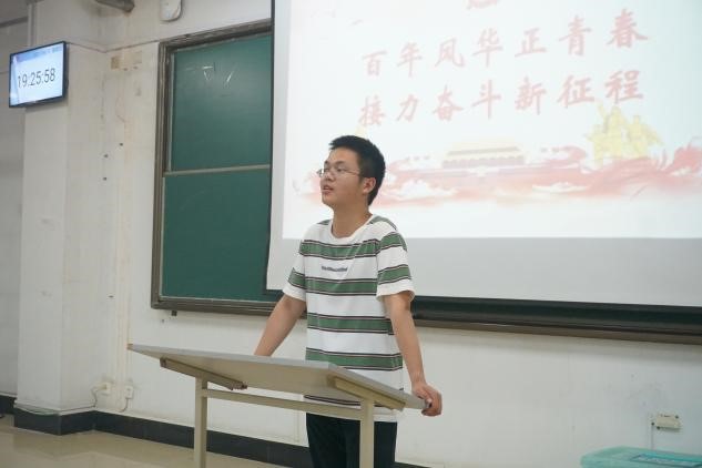 王皓宇用朴实的语言,饱含深情地发表了以《踵事增华,踔厉奋发》为题的演讲。中国共产党百年奋斗史在同学们眼前缓缓铺陈。一百年前,中国共产党诞生于嘉兴南湖的一条小游船,参会代表13人怀着一腔热血用轻声呼出时代的最强音:“共产党万岁!”这一点星星之火,经过无数革命先辈的流血牺牲,最终制造出人类社会运动的燎原大火,如浪潮席卷中国,改变了世界。共产党人一路走来,付出无数汗水与鲜血。回顾百年党史,挖掘百年党史底蕴,讲好党史故事,便是我们的责任。