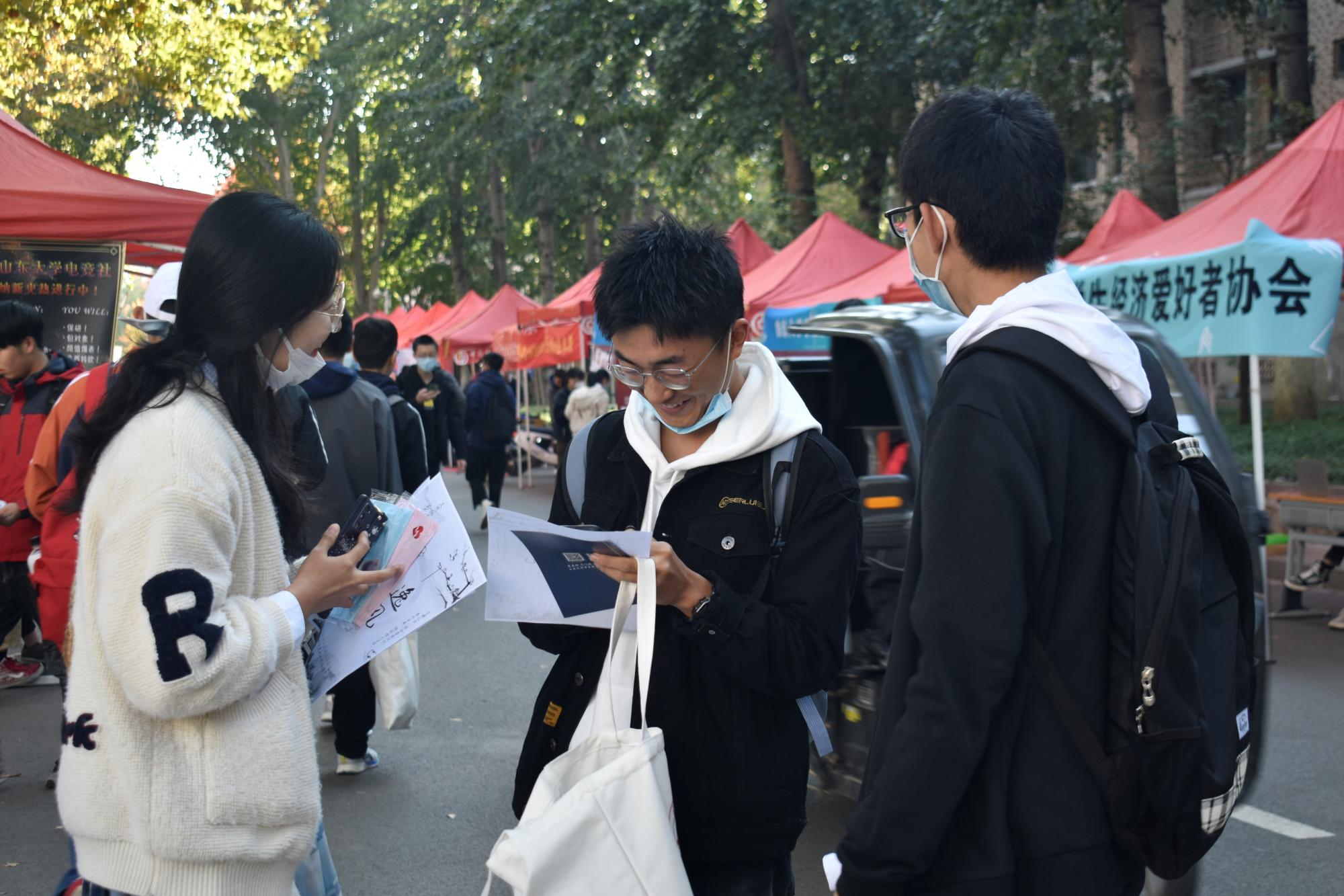 10月23日,新葡的京集团35222vip学生会及青年志愿者协会于济南五校区联合开展了“耕读百廿同舟楫,情系援疆惠天下”主题爱心义卖活动,志愿者们通过向老师、学生售卖口罩,卡贴,钥匙扣,书袋等物品,集资为新疆维吾尔自治区伊犁哈萨克自治州伊宁县第一小学和贵州省铜仁市松桃苗族自治县甘佃小学设立奖学金、助学金,置办教学物资等,改善孩童们的学习条件。