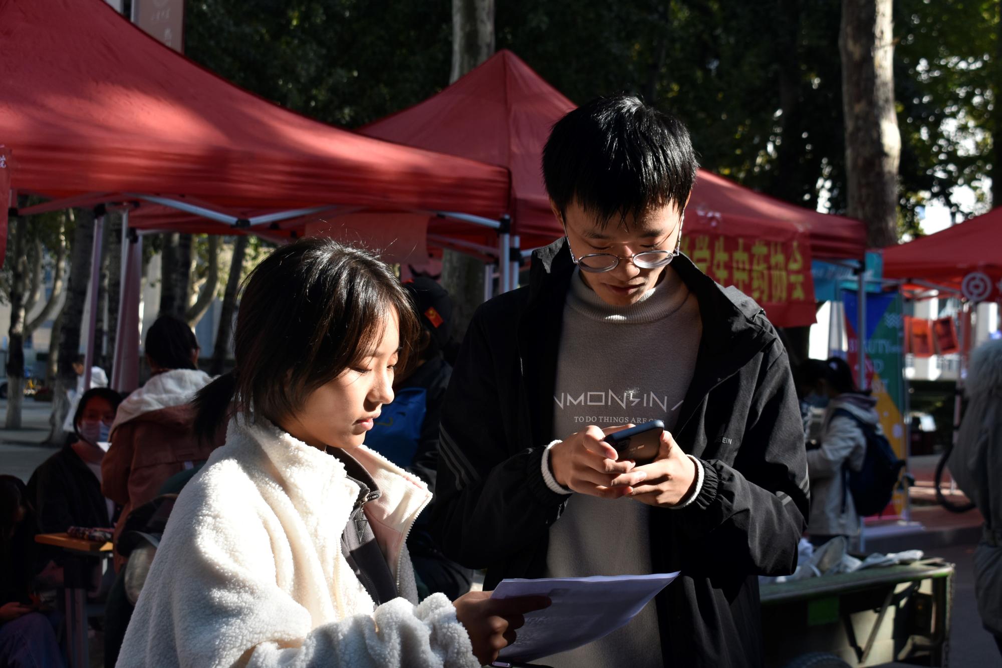 上午八时,各校区志愿者准时集合于指定地点,开始分配工作、分发物资并核对价目表,同学们兴致盎然,活力充沛,对即将开展的义卖活动怀揣了高度的热情。九点整,志愿者们各自领取了义卖物资,以2到4人为一组分散前往校区各处,义卖活动正式拉开了帷幕。