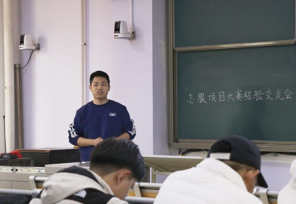 会议邀请到往届志愿服务大赛中取得优异成绩的学子作经验分享。创意组一等奖获得者韩雨洁从前期准备、项目创新性与可行性、成果展示等方面向参会同学做了介绍,推荐了线上线下结合的多种实践方式,强调项目的创新性源于对生活的发掘,可行性需要依据当地情况做出评估。创行组一等奖获得者张茂昌着重讲解了组队与寻求合作问题。他指出,志愿服务队队长要能担重任,能推动队伍活动持续进行并能及时完成,志愿服务队队员需要有较高的执行力,并建议参赛队伍与校内的社团或协会开展合作。