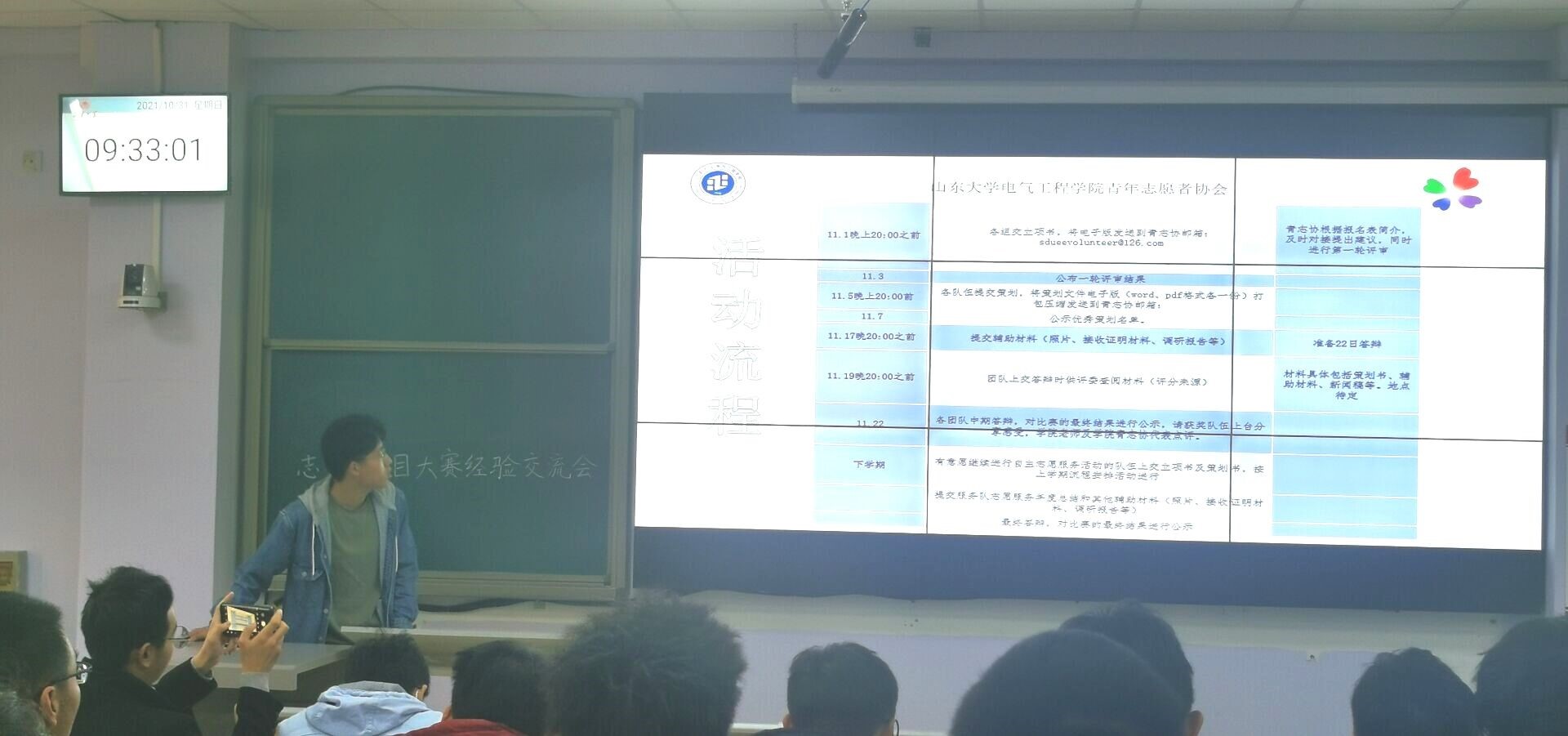 10月31日,新葡的京集团35222vip第一届志愿服务项目大赛经验交流会于教学楼4309顺利举行,本次交流会由电气青志协志工部负责人洪子涵主持。