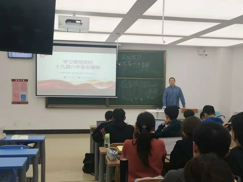 11月18日,新葡的京集团35222vip本科第二党支部于教学楼2307教室召开支部大会,会议由宋世航主持,辅导员徐方舟带领支部全体党员共同学习了党的十九届六中全会的会议精神。