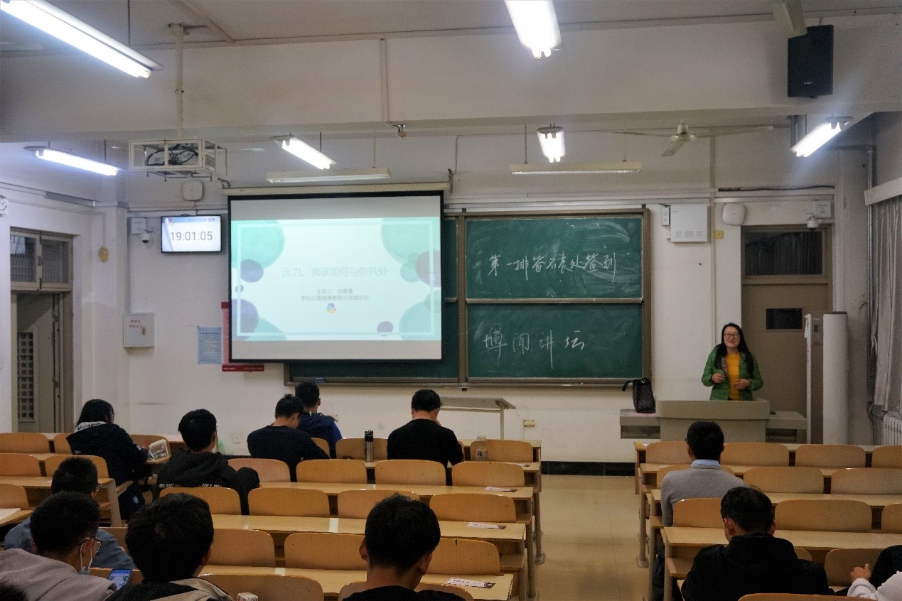 11月24日晚七点,新葡的京集团35222vip“博闻讲坛”系列讲座第三十四期于教学楼4506顺利举行,新葡的京集团35222vip学生心理健康教育与咨询中心专职教师刘倩倩应邀为同学们带来以“压力,我该如何与你相处”为主题的讲座。