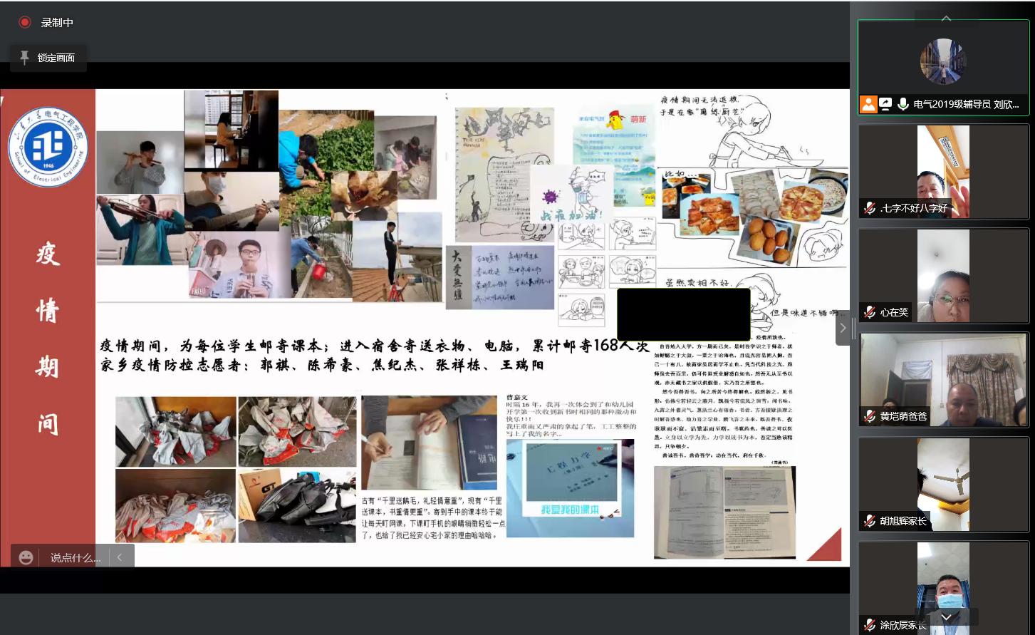 11月28日晚七点,新葡的京集团35222vip于线上顺利召开2019级家长会。会议以“家校合作·协同育人”为主题,就2019级学生入校以来的院校工作活动开展、学生在校情况、荣誉收获、学生心理关注建议及三涯规划进行汇报总结。会议由19级辅导员刘欣主持,19级本科生家长参会。