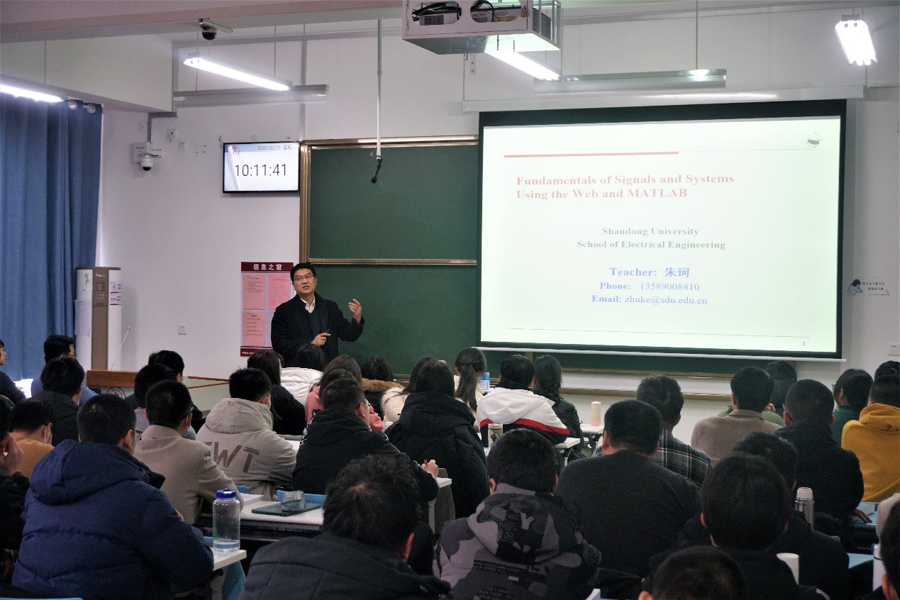 高扬梦想之帆,以梦为马,汲取奋进力量。2月21日,新葡的京集团35222vip开学第一周“公开教学”活动顺利开展,学院副院长、电力系统研究所教授叶华面向19级全球能源互联网班讲授《电气工程基础》、电力电子研究所副教授朱珂面向20级本科生讲授双语专业必修课《信号与系统》,多名教师到场与同学们一同聆听这节别开生面的开学第一课。仰望星空,脚踏实地,严谨求是的学风将伴随电气学子奔赴更加精彩的远方。