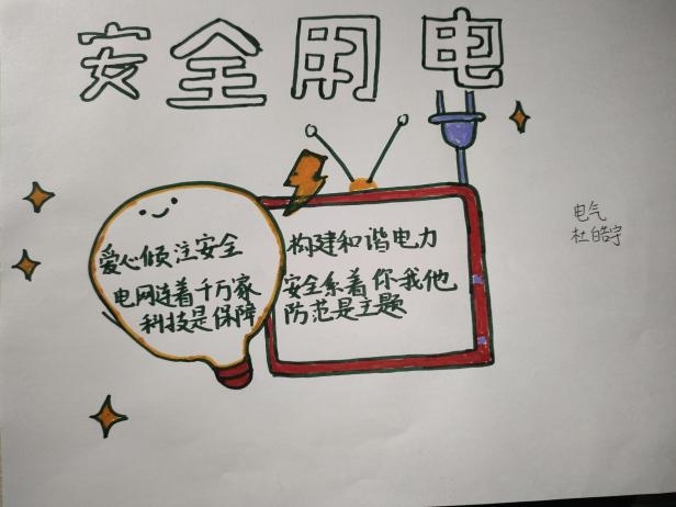 对工科专业的同学们而言,日常学习会经常接触到与实验、实习相关的课程,如大学物理实验、电路实验、电子工艺实习、电机学实验等。了解实验室安全管理规章制度,掌握实验安全操作技能,对于做好个人防护、保障设备的安全与实验结果的准确都具有重要意义。此次活动由安电社负责人姜店丰主讲,通过一个实验室安全基础知识小视频带领参会同学初步了解应注意的问题,并从个人实验准备、防火、用电安全、设备安全、意外事故处理五方面进行了宣讲介绍。在个人准备方面,姜店丰呼吁同学们要提前了解实验内容,学习掌握正确的实验方法与操作规范,做好安全检查,提高个人安全防护意识。对于防火、用电、设备安全三方面内容,姜店丰着重讲解了有关的注意事项与预防措施。最后,他从日常预防、创伤急救两个角度对意外事故处理的有关知识进行了普及。宣讲结束后,安电社组织了安全用电宣传材料制作活动,社团成员积极参与,制作了手抄报、漫画等作品。形象生动地展示了安全用电的重要意义,展现了社团同学们的热情与创意。