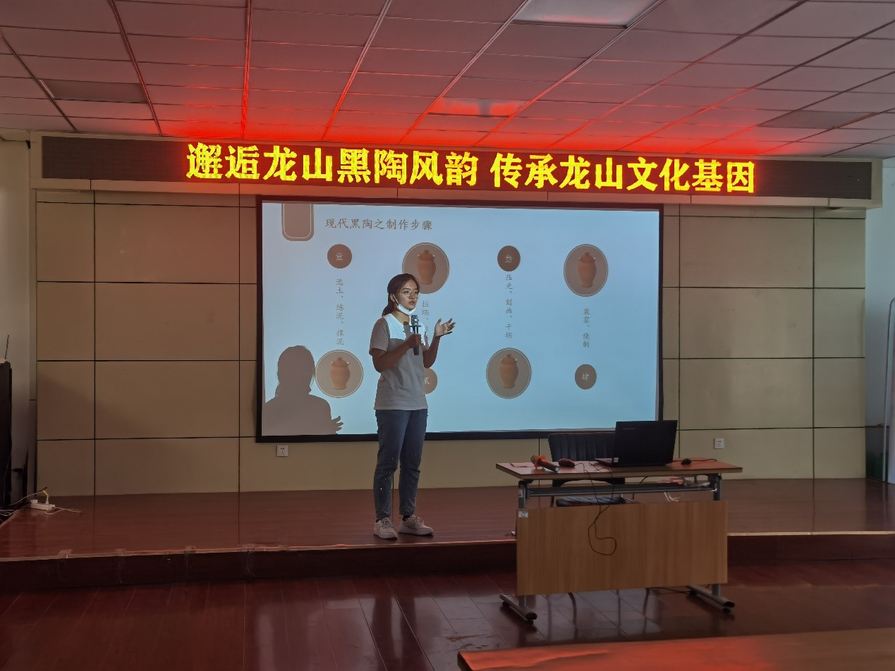 探寻非遗古韵,厚植传统文化。文化是民族发展之路不可或缺的沃土,打造非遗活化高地,更需从挖掘身边的传统文化资源做起。盛夏时节,“赏遗风,听陶韵”社会实践队赴济南市章丘区龙山黑陶产业协会进行调研,面向济南市历下区花园路社区、临清市松林镇松林社区开展宣讲活动,将非遗文化的种子植入人心;“非遗之声”文化调研队赴章丘葫芦产业园与济南文化馆,在实地寻访中了解葫芦文化;“泉城古韵,非遗探秘”社会实践队先后赴济南市文化馆开展调研工作,线上采访济南皮影戏传承人,深入走进非遗的世界;“人文韶韵,锦绣齐风”齐文化调研团走访齐文化文物博物馆、淄博市临淄区足球博物馆,探索齐文化的璀璨奥秘;“舌尖上的济南”社会实践队调研多家名店,感受糖醋鲤鱼、九转大肠中传统鲁菜文化的坚守与传承;“艺响泉城”社会实践队从汉服、皮影、脸谱梆子等方面于济南各大社区设立展台,策划“经典诵读”、“书法进社区”等活动,全方位展示非遗魅力。精美绝妙的陶瓷艺术,赞不绝口的珍馐美味,身怀绝技的手工艺人,装点着非物质文化遗产的璀璨星空,学子们于调研活动中宣传中华优秀传统文化,自身的非遗保护意识也在不断加强。