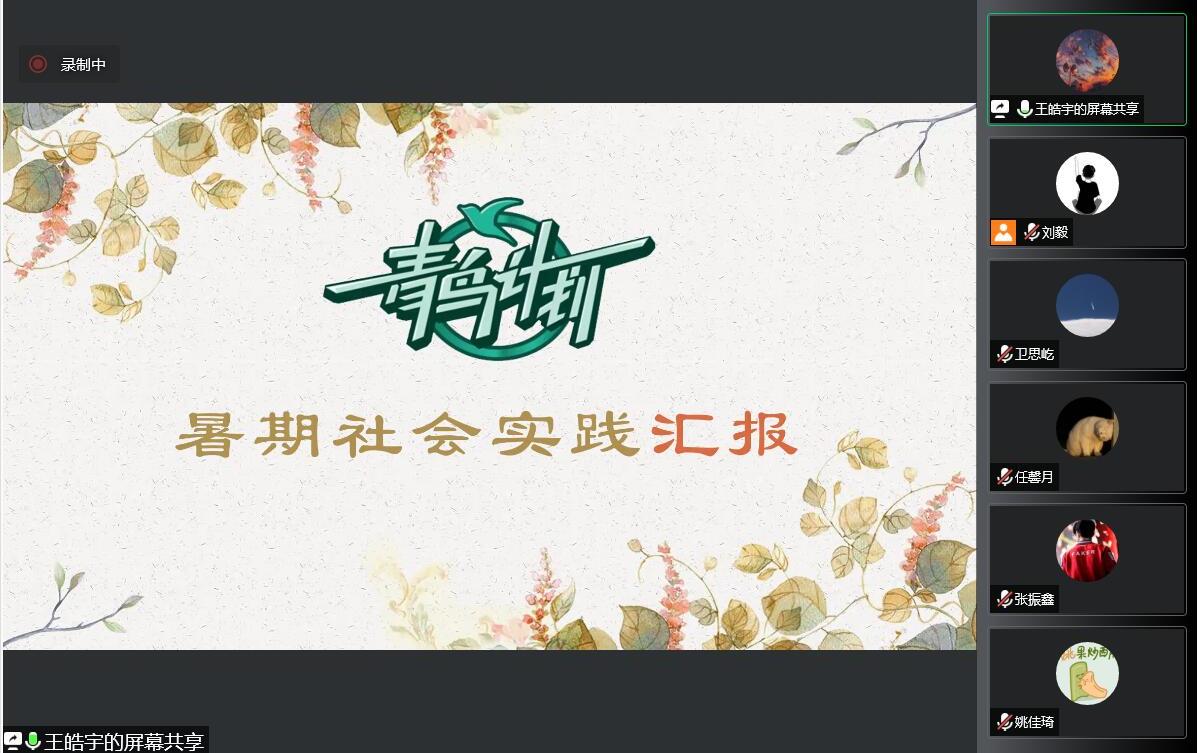 预备党员任馨月、王皓宇对所带喜迎党的二十大青春宣讲团暨“牢记青春寄语”主题宣讲暑期社会实践专项队伍活动开展情况进行汇报。“E启华章”社会实践队以迎接学习宣传党的二十大为主线,通过开展红色基地调研、线下采访宣传、社区宣讲、党旗绘制等活动,出色完成宣讲任务;“青鸟计划”社会实践队在实习就业方面为同学们提供切实可行的指导。