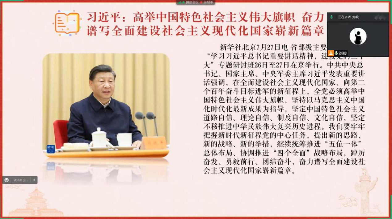 刘毅、马宁、王瑞阳三位党员领学了相关材料。刘毅领学《习近平谈治国理政》第四卷主要精神和习近平总书记在省部级主要领导干部专题研讨班上的重要讲话精神;马宁以“习近平经济思想指引中国经济行稳致远”为主题,从新一轮科技革命、我国经济发展阶段转化等多个方面理解把握习近平经济思想的丰富内涵;王瑞阳结合近期习近平总书记重要讲话和回信精神表示,即将召开的党的二十大,是在进入全面建设社会主义现代化国家新征程的关键时刻召开的一次十分重要的大会,对团结和激励全国各族人民为夺取中国特色社会主义新胜利而奋斗具有十分重大的意义。