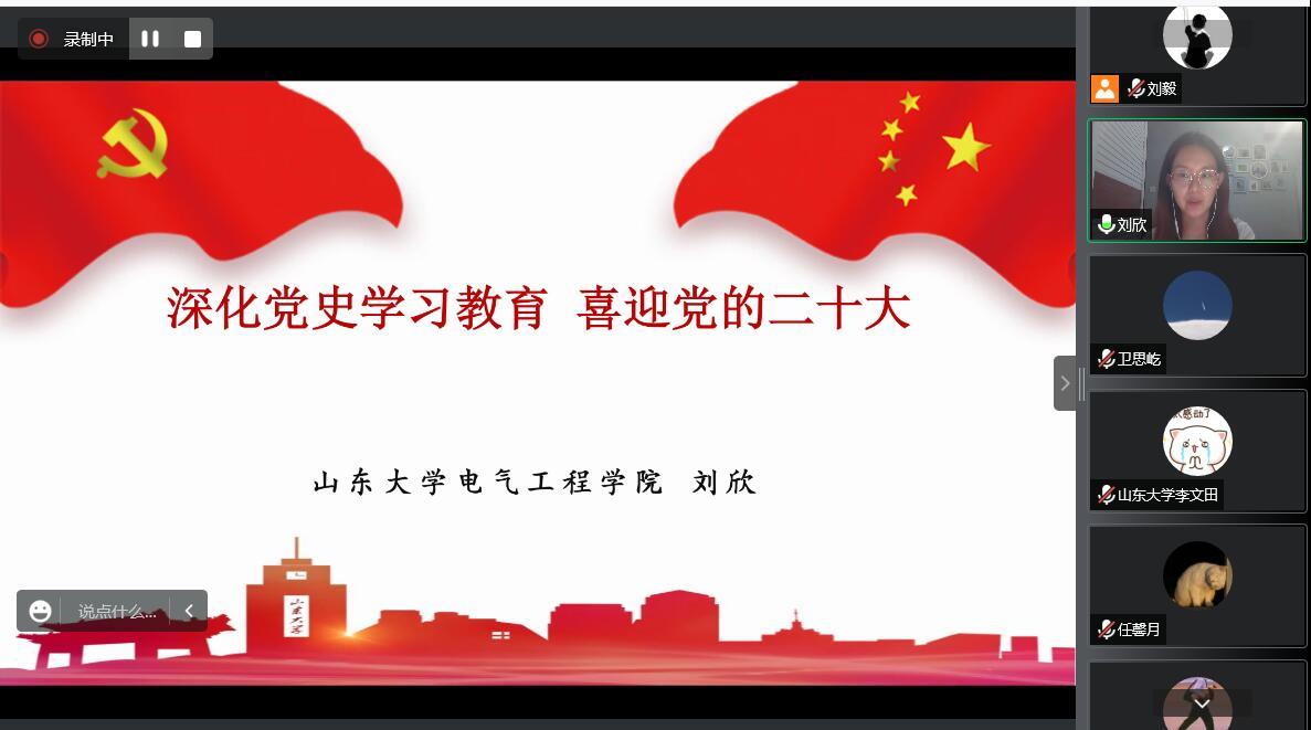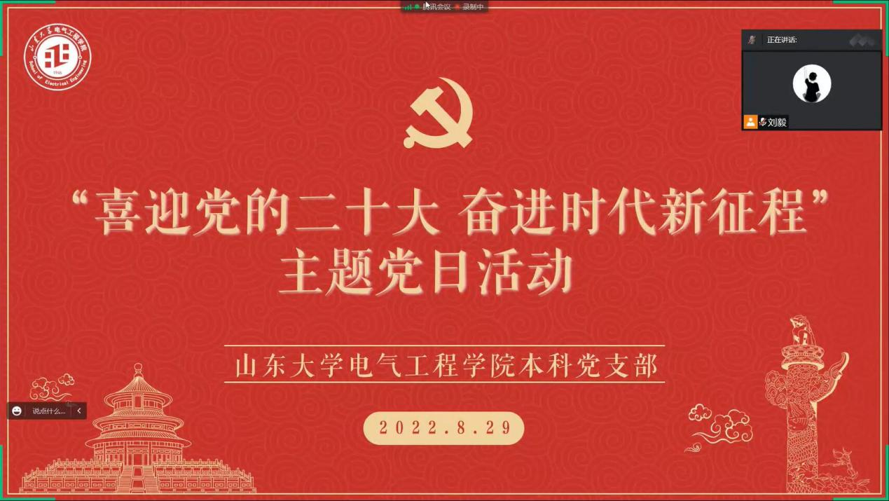 为深入学习《习近平谈治国理政》第四卷,贯彻习近平总书记在省部级主要领导干部专题研讨班上的重要讲话精神和在中央统战工作会议上的重要讲话精神,加强新学期本科生党支部建设和党员培养教育,8月29日晚,新葡的京集团35222vip本科生党支部举行“喜迎党的二十大,奋进时代新征程”线上主题党日活动。活动由本科第一党支部党员刘毅主持,本科第三党支部书记刘欣主讲党课,全体本科生党员参会。