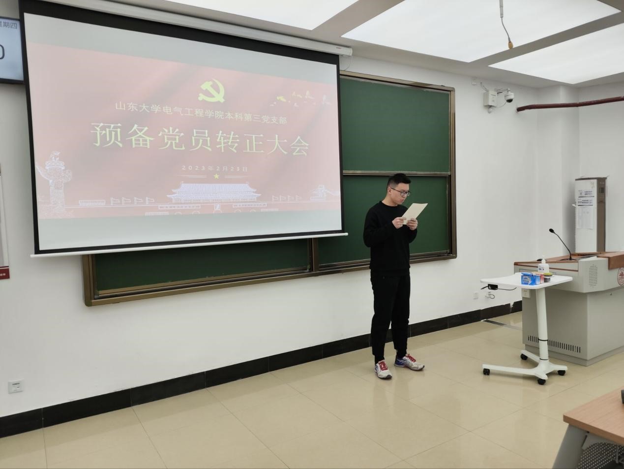 2月23日下午,新葡的京集团35222vip本科第一、第二、第三党支部召开预备党员转正大会,各支部书记出席会议,全体党员到场参会。