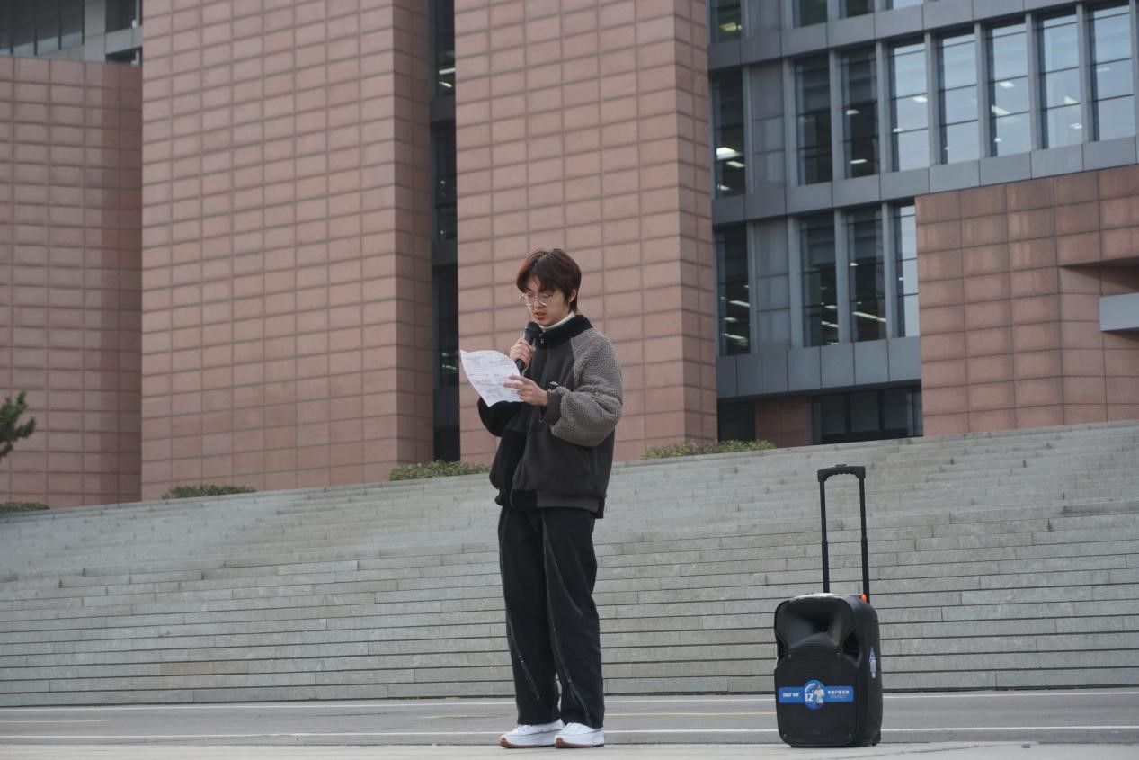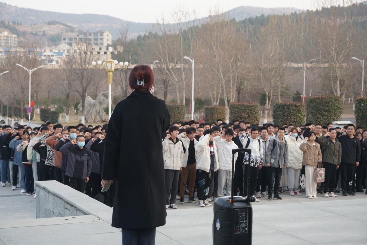 在国旗护卫队铿锵有力的步伐中,鲜艳的五星红旗迎着朝霞冉冉升起,全体同学站姿端正,神情严肃,行注目礼,唱响了庄严肃穆的国歌。礼毕,21级学生代表齐培衡发表国旗下演讲,以“学习贯彻党的二十大精神、永远跟党走、奋进新征程”为主题,他指出领导能力、理论知识与实践能力的重要性,指明青年人的担当使命,并鼓励学子们踔厉奋发,在新时代新征程中共铸鼎盛山河,谱写时代荣光。