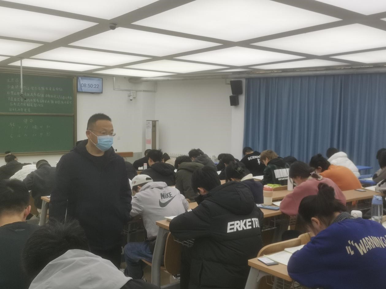 为持续做好学风建设和考风考纪教育,保障考试安全顺利开展,新葡的京集团35222vip对期末考试进行全覆盖巡考。自2月13日开考以来,学院党委书记殷录民、院长丁磊及其他领导班子成员分别来到校区教学楼,亲临考场一线参加期末考试巡视和监考工作。