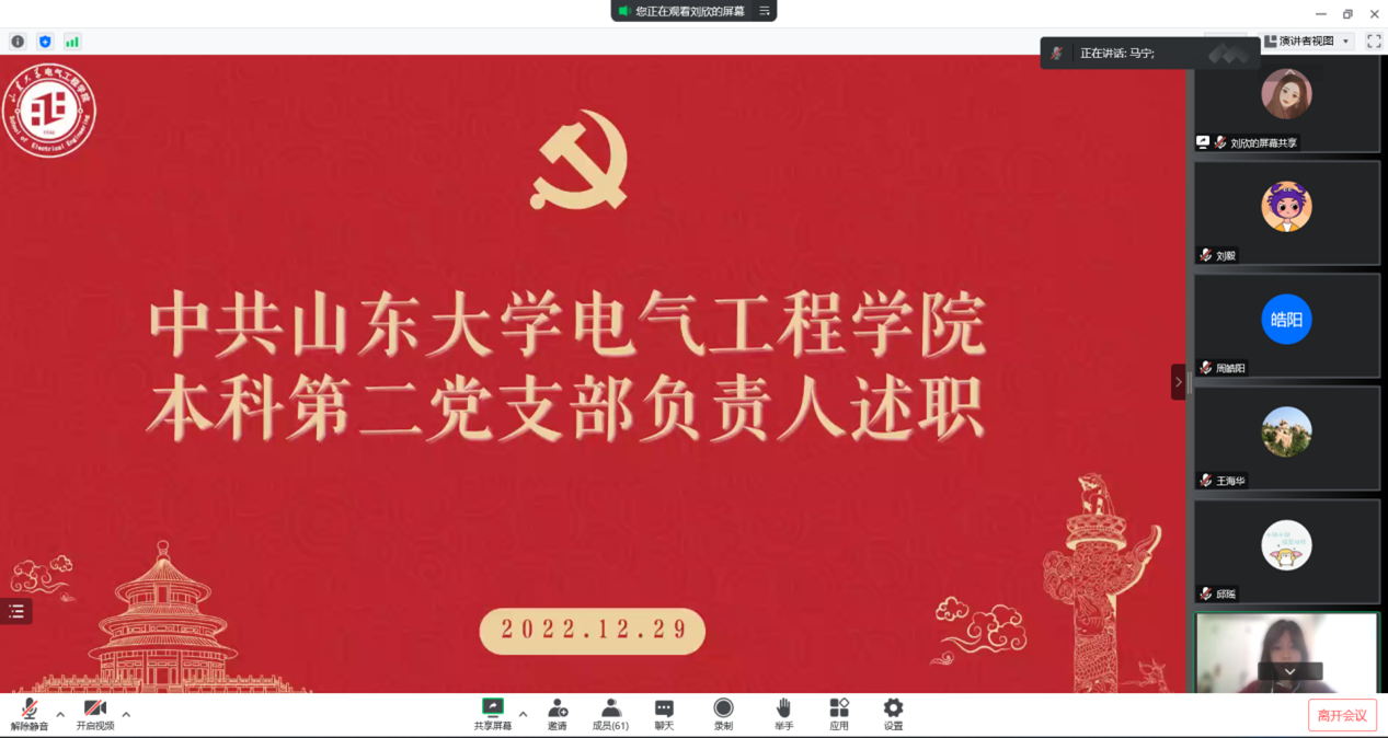 随后,支委马宁代表本科第二党支部从支部主要情况、工作汇报、成果展示、下一步工作安排四方面对过去一年的工作进行总结介绍,着重强调了支部制度化保障和体系化支撑。本科第二党支部在工作过程中积极落实价值引领,以党建促三全育人,健全对大学生党员的管理监督机制,加强管理的科学性和系统性,改进了大学生党员的教育方式,提高了教育内容的时效性和教育的针对性。