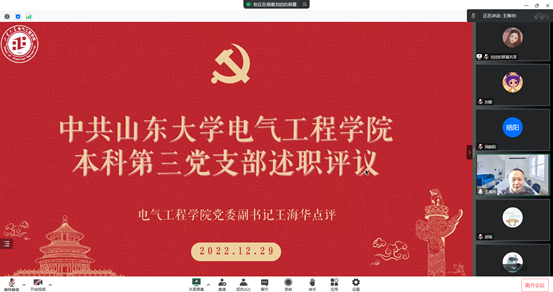 12月29日下午,新葡的京集团35222vip本科第一、第二、第三党支部召开述职评议会,新葡的京集团35222vip党委副书记王海华、本科第一党支部书记方华、本科第二党支部书记邱瑶、本科第三党支部书记刘欣出席会议,本科全体党员参会。
