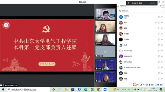 首先支委刘毅代表本科第一党支部进行述职,围绕支部基本情况、履行全面从严治党责任情况、抓基层党建工作情况、存在的问题及下一步工作计划四个方面重点展开介绍,总结了过去一年党员发展情况、三会一课落实情况、党建工作创新情况。一年来,本科第一党支部持续深入开展理想信念和宗旨教育、党风党纪教育、法制教育、诚信教育和岗位廉政教育,认真贯彻落实意识形态工作责任制,切实增强政治担当和阵地意识,依托“学习强国”“共产党员网”“青年大学习”等线上学习资源和三会一课,凝心聚力,充分发挥基层党支部在人才培养上的关键作用。