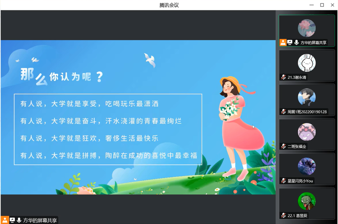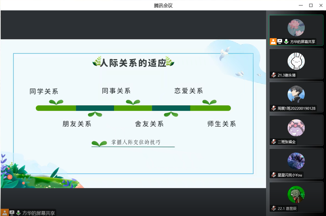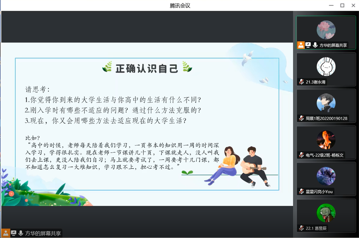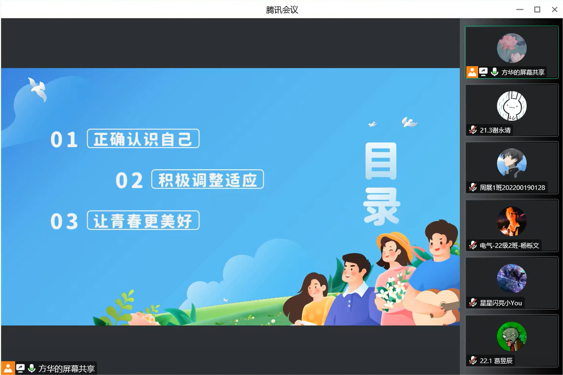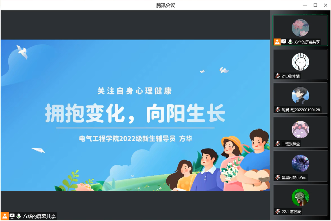 为帮助新生明确自我定位、适应大学生活、积极学习备考,11月24日晚,新葡的京集团35222vip于线上举办“走进心灵——拥抱变化的秘密法则”专题讲座,2022级辅导员方华主讲,全体22级同学参会。
