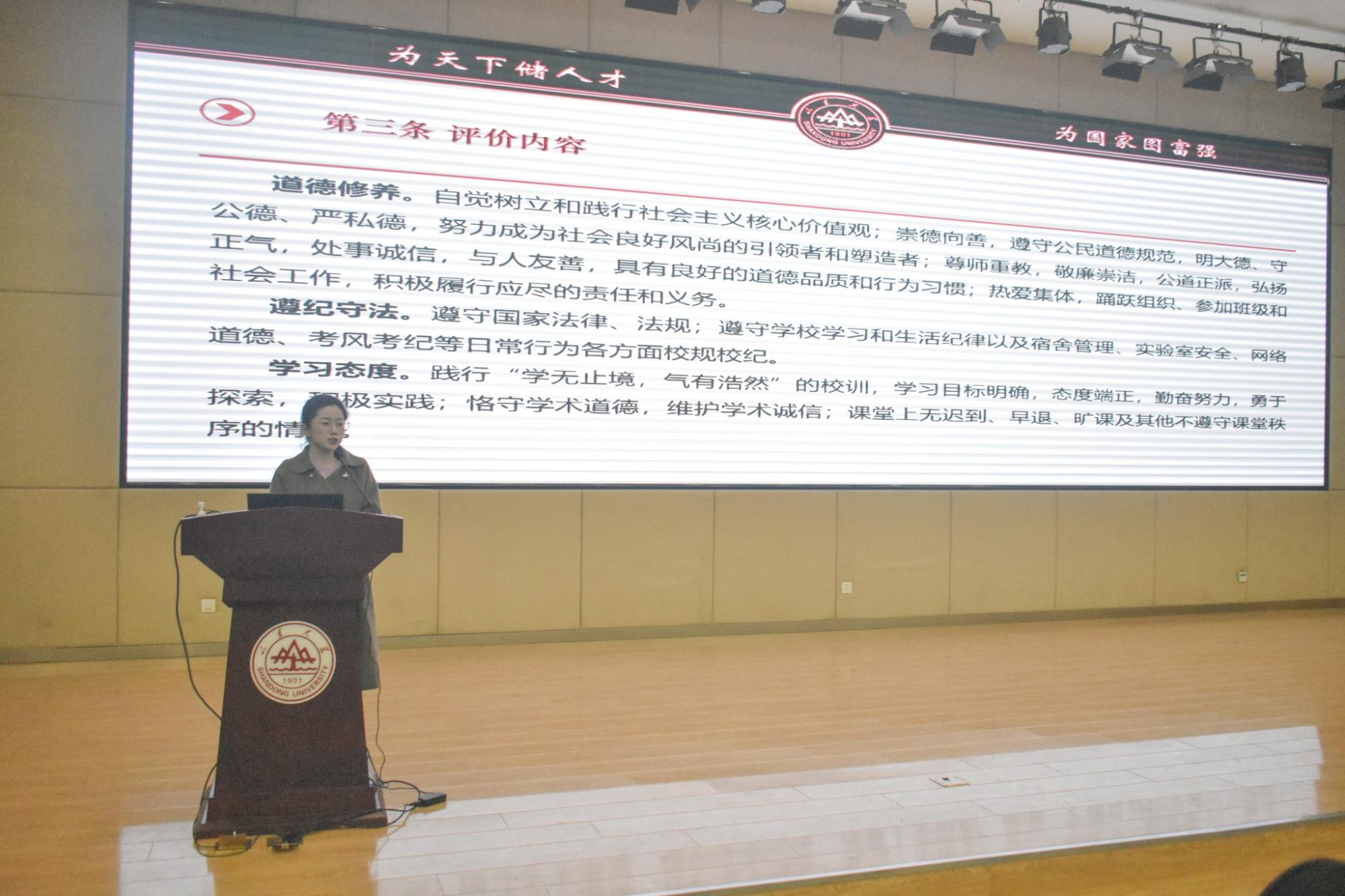 本次讲座重点解析了《新葡的京集团35222vip本科生综合评价办法(试行)》,进一步明确立德树人根本任务和“为国育贤”办学初心,以培养最优秀的本科生为己任,坚持德育为先、智育强基、体育强身、美育润心、劳育塑魂,促进学生全面发展和成长成才,培养具有“家国情怀、担当精神、崇实品格、创新素养”山大基因的社会主义建设者和接班人。
