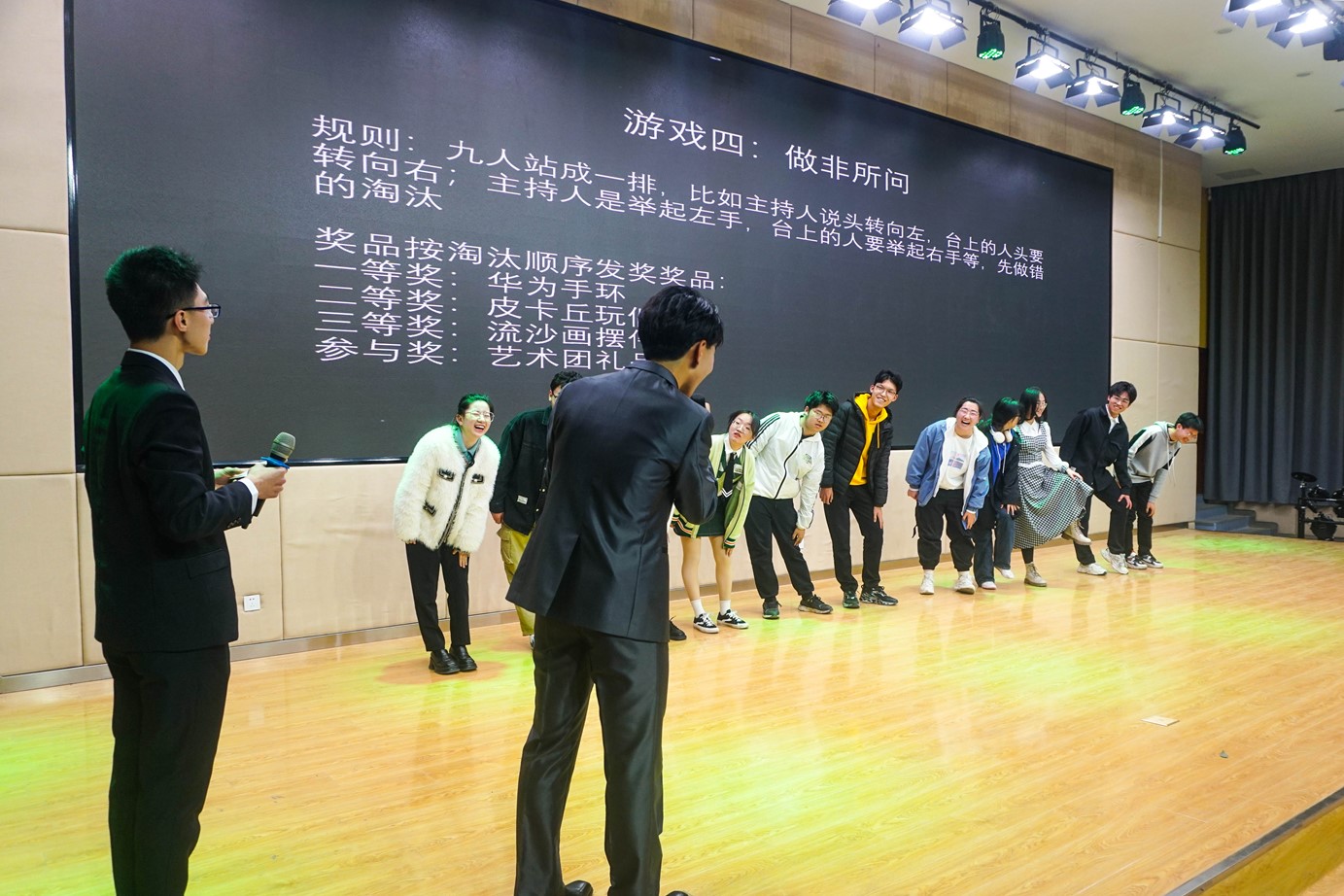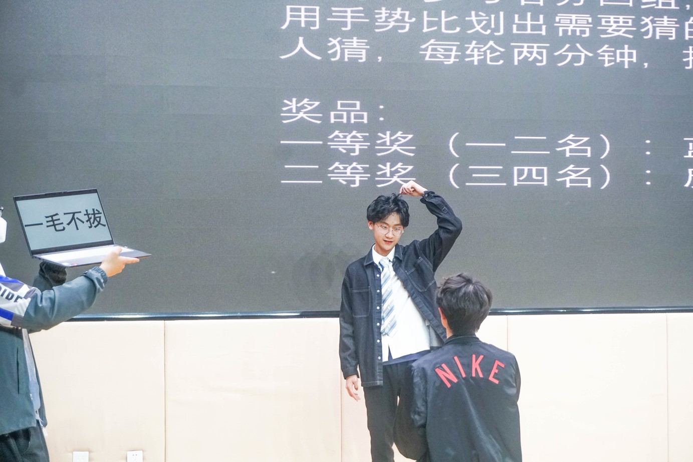 “你比我猜有灵犀,心领神会显默契”众多中场活动中,同学们踊跃报名,积极参与。“推手掌”游戏中有进有退的比拼令众人笑声连连,现场气氛热烈。