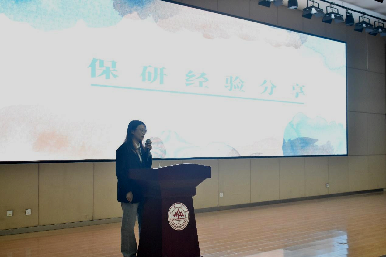 保研本校的罗馨雅重点分享了通过竞赛途径保研的宝贵经验。她在简单介绍自身竞赛经历后,分析了与保研有关的竞赛及各类科创比赛的特点,结合科创答辩的经历提醒同学们注意相关细节。
