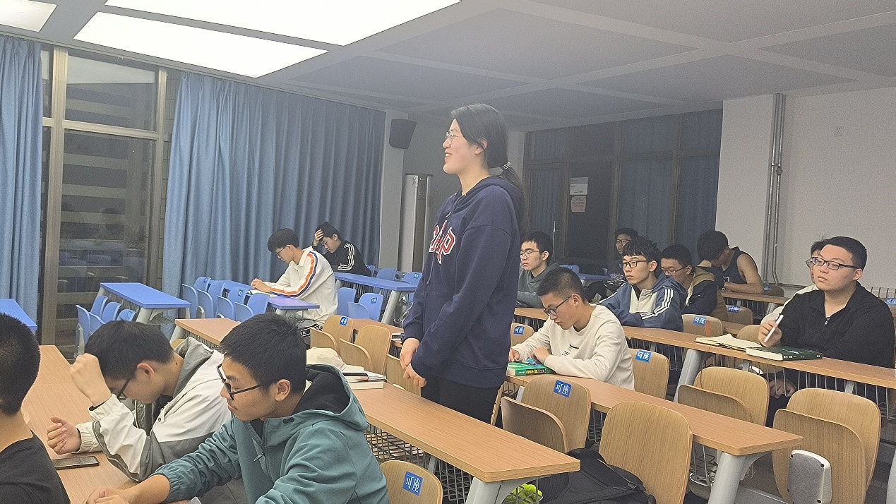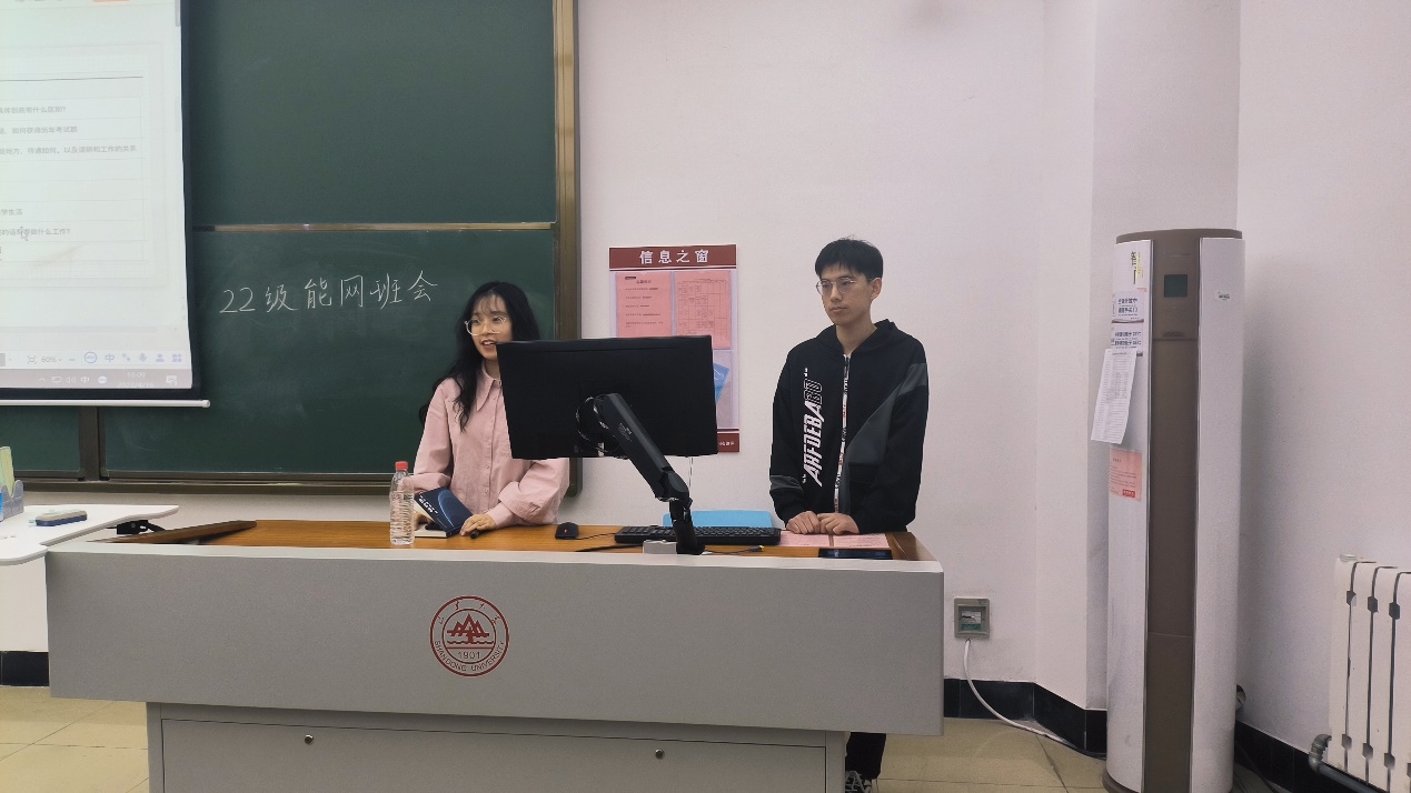 本次班会,能网班邀请到班主任赵浩然老师的两位优秀学生——博士生王梦雪和硕士生于佳乐,与大家进行经验交流分享。王梦雪、于佳乐详细地讲解了能网班的培养模式和毕业去向,解答了大家在学习、生活、学生工作等方面的疑惑。过程中也有同学对硕士、博士的生活充满好奇,或是对实验室的学习感兴趣,现场提出问题,两位学长学姐一一进行了回答。王梦雪特别指出,大一的同学们应该在学业方面打好基础,同时及早做好保研、考研、就业、出国等方面的打算,尽早确定自己的发展方向。