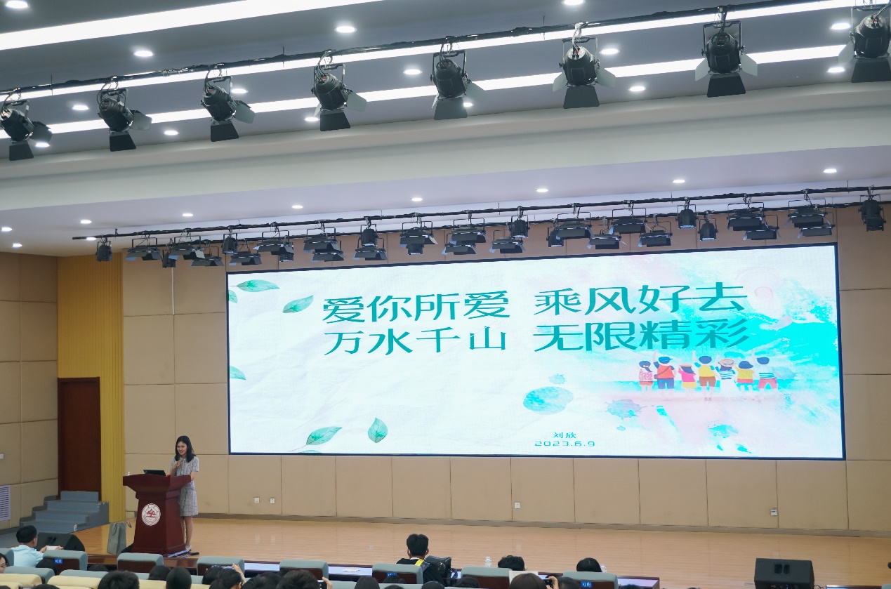 刘欣梳理毕业流程、包括毕业合影、毕业资格审核、党团关系转移等十项内容,着重强调整理个人档案、领取毕业证学位证等重要事项,为同学们顺利毕业保驾护航。刘欣从明志、感念和扬帆三个方面对同学们提出希冀,希望同学们怀感恩之心,以坚定果敢的魄力、义无反顾的决心和脚踏实地的行动,勇做时代弄潮儿,在为祖国和人民的赤诚奉献中实现自身远大抱负。