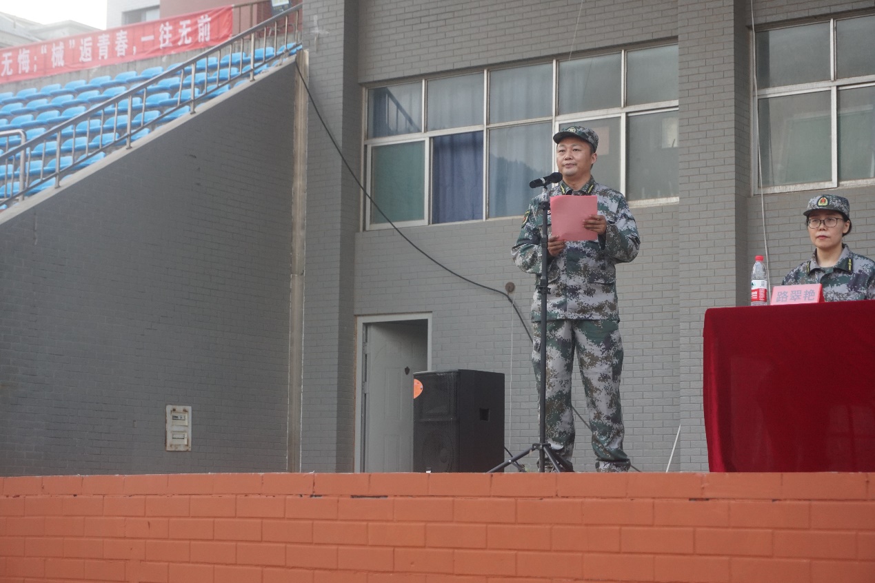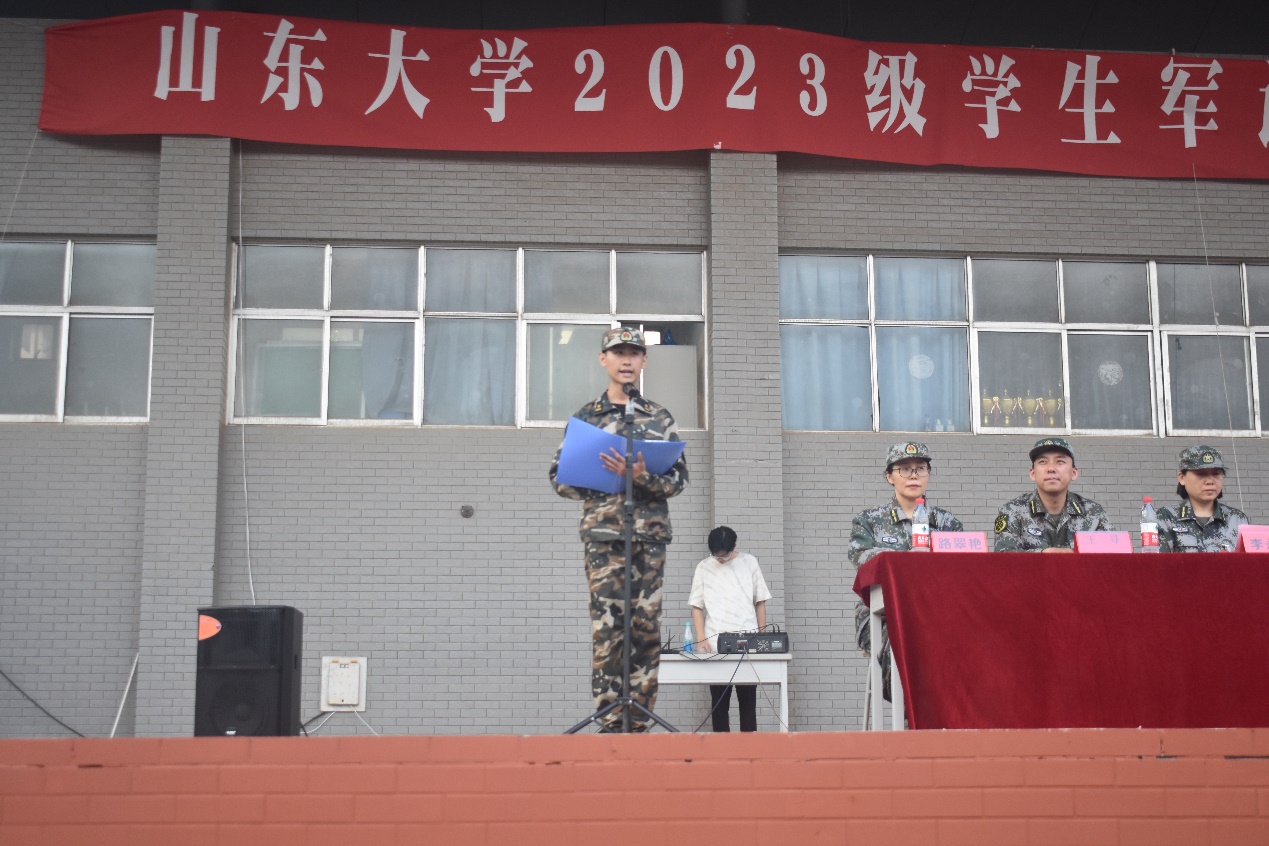 赵鸿喆代表参训学员发言。他以昂扬的斗志和饱满的热情,抒发了自己对来到山大的激动与自豪。他认为,军训是一次认识彼此的宝贵机会,同学们的体格与意志将得到充足的锻炼。